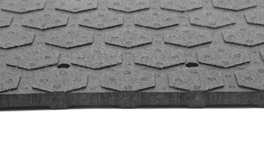 Paneles prefabricados amortiguadores utilizados en sistemas de césped artificial para fútbol para la absorción de impactos.